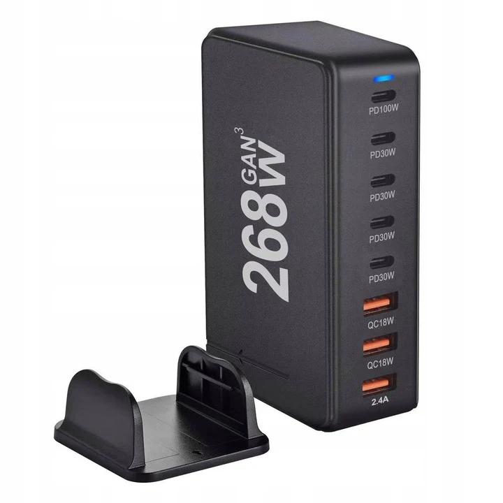 AJP 268W Desktop GAN Charger 8 Port USB Type-C PD Charging Station Fast Charger BLACK—