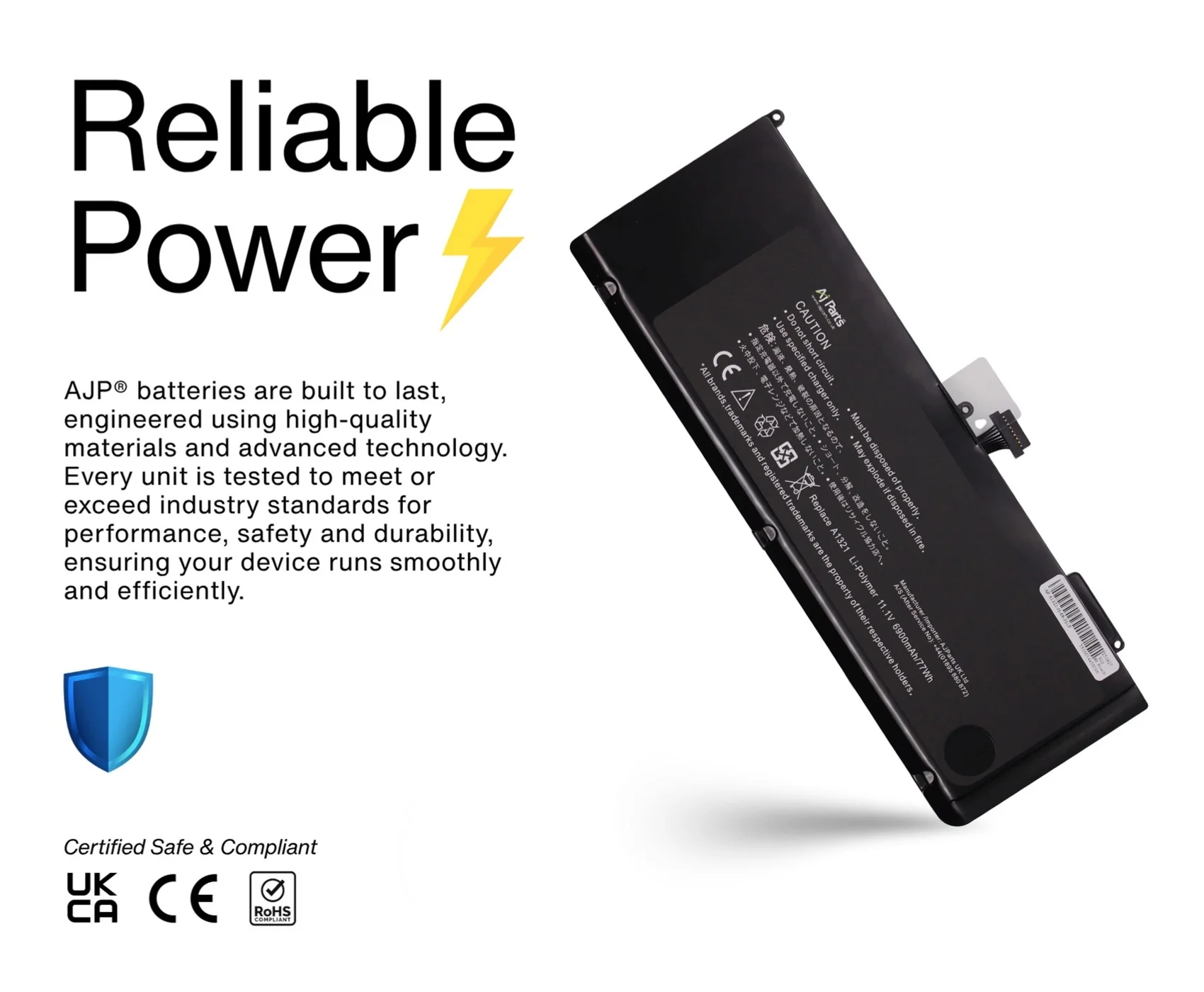 AJP Replacement Laptop Battery for MacBook A1321 (AP A1321-H-68-3S1P) 11.1V 6900mAh / 77Wh 3-Cell High-Capacity Li-ion—